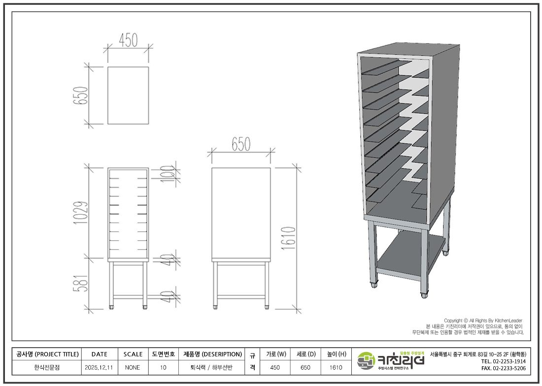 주문제작품 [제작62ㆍ퇴식랙/하부선반] 퇴식작업을 효율적으로! -