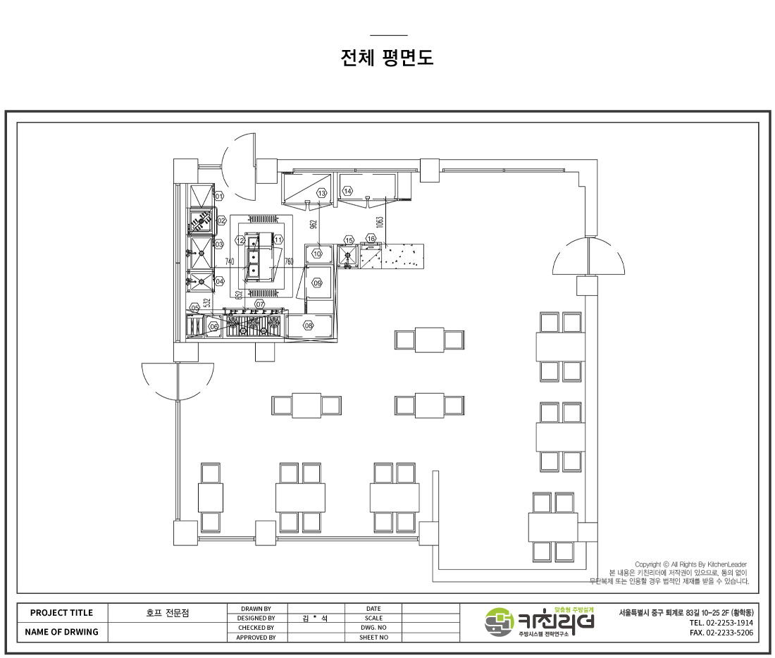 이번 3D도면은 27평 규모의 호프전문점 주방 입니다.
