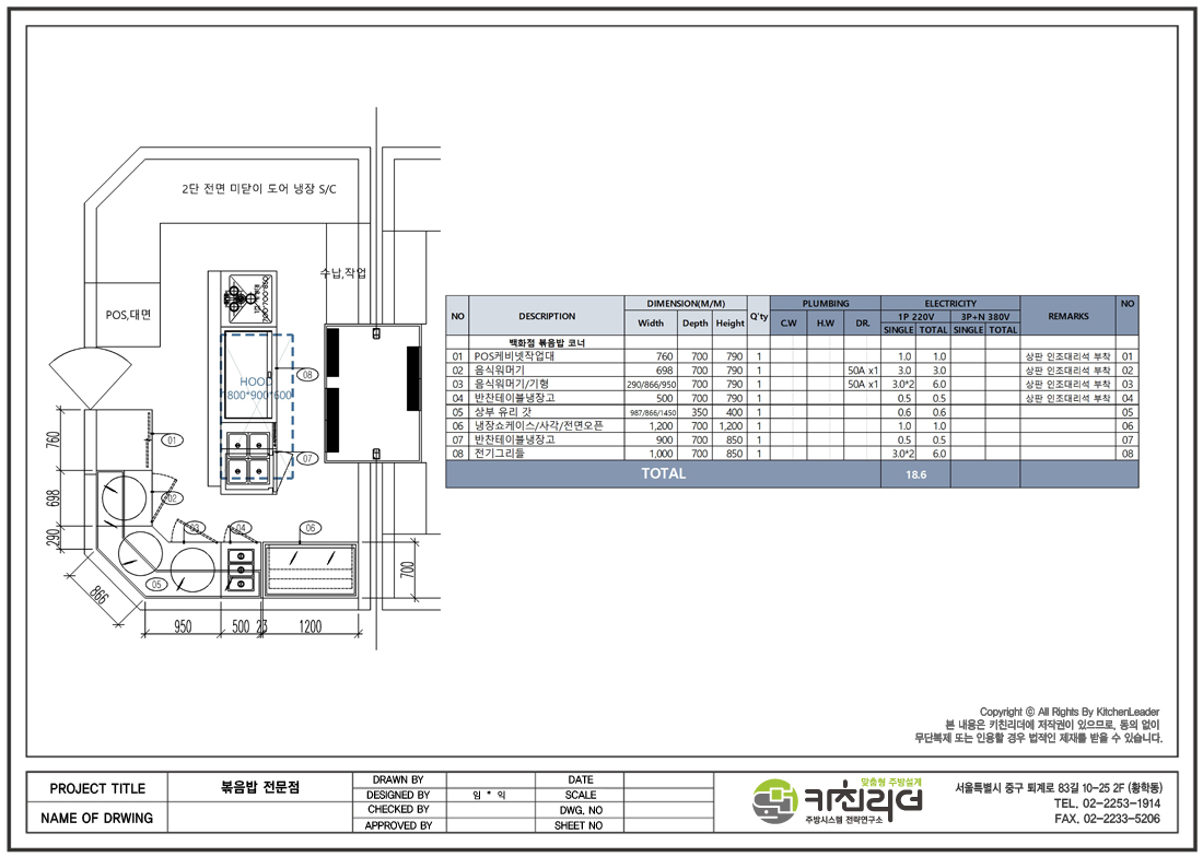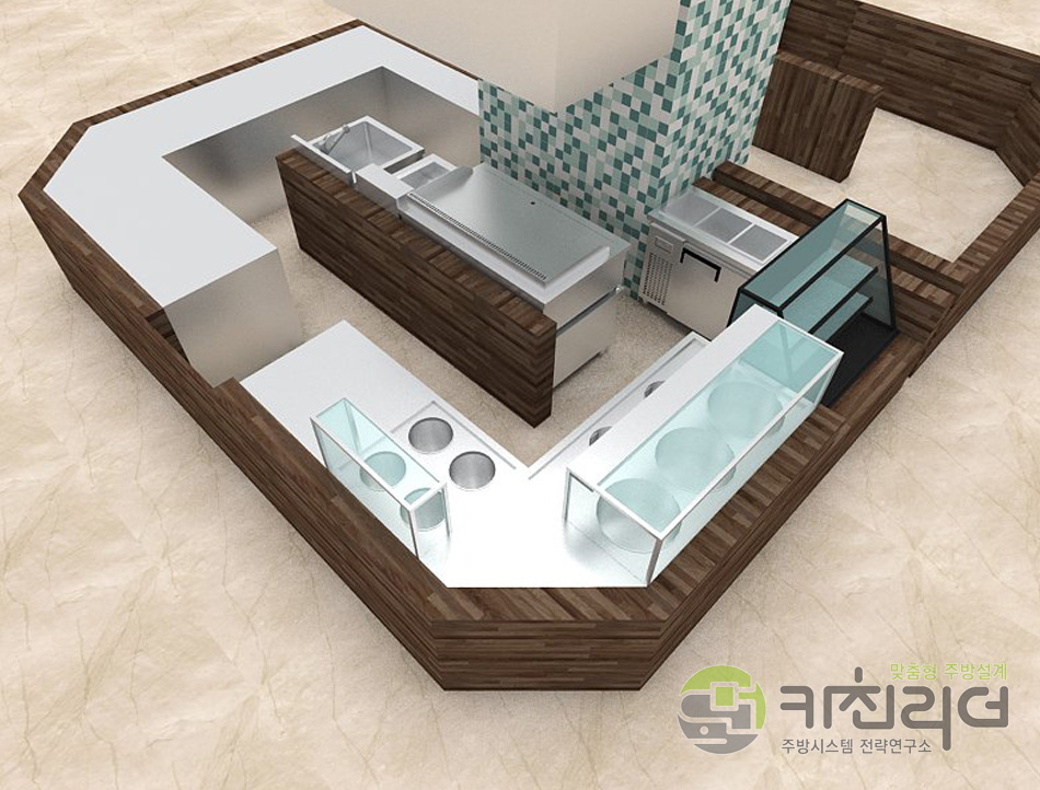 1차에서 변경된 점은 배식기기 변경과 후방 조리라인의 튀김기 삭재 받드테이블냉장고의