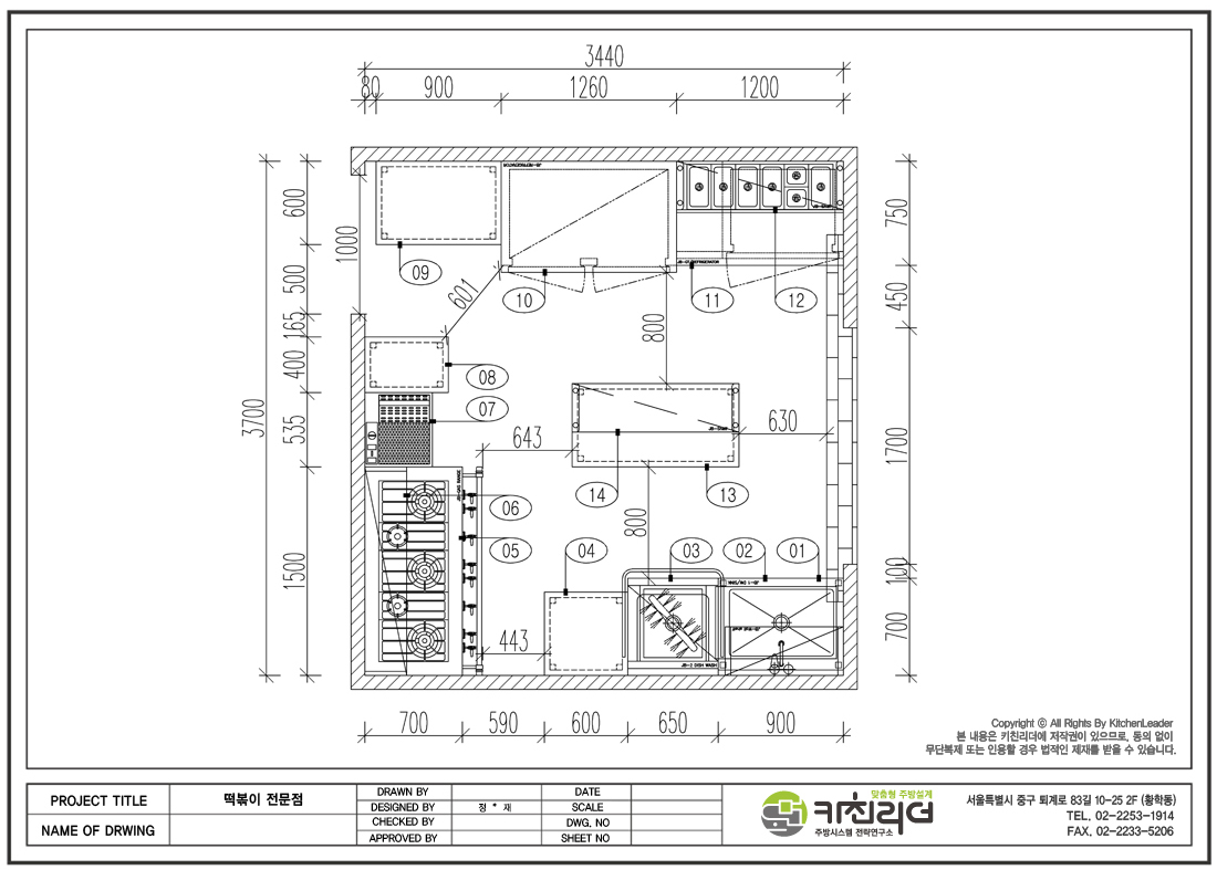 한식 [한식102ㆍ떡볶이전문점] 주방도면/주방설비내역 -